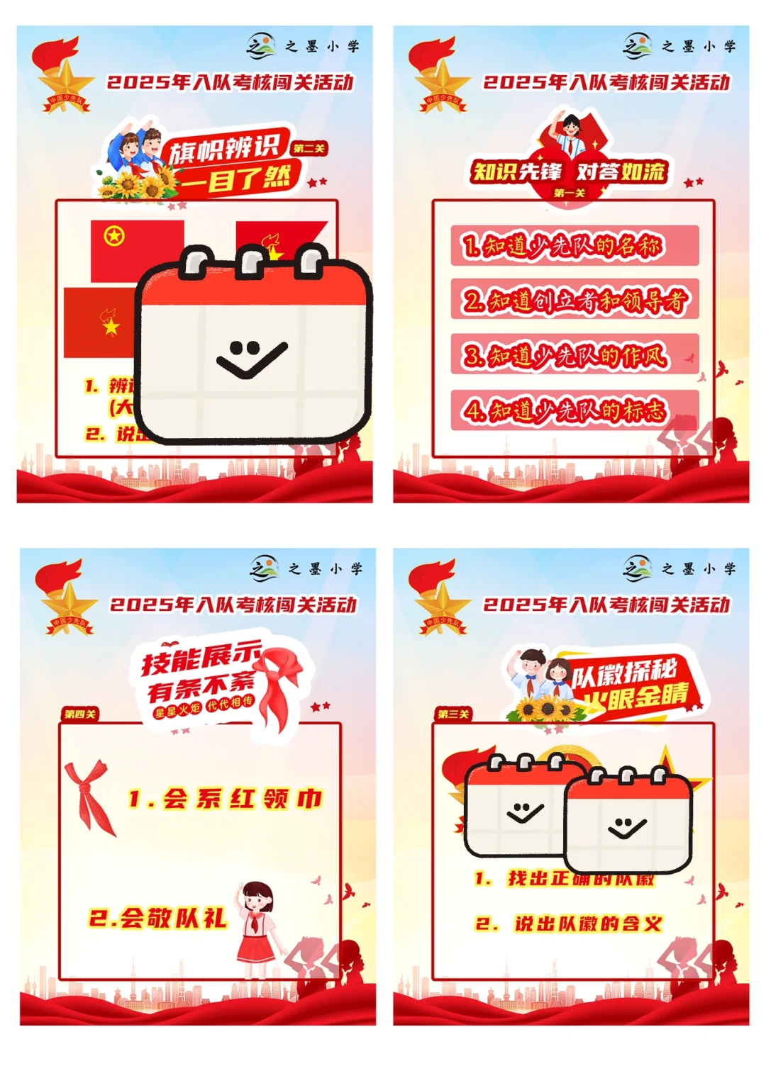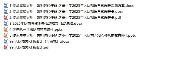 资源简介:今日关键字:入队考核、队前教育、入队闯关考核家人们谁懂啊!最近发现少先队入队的闯关活动真的超有意义!很多人好奇为啥要设置这些关卡,今天就来给大家唠一唠~传统的入队流程或许只是简单的仪式,但闯关活动让入队这件事变得超有趣又超有深度!在“知识先锋”关卡,孩子们学习少先队的名称、创立者和领导者等知识,这可不是枯燥的死记硬背,而是让他们从根源了解少先队,在心里种下热爱祖国、向