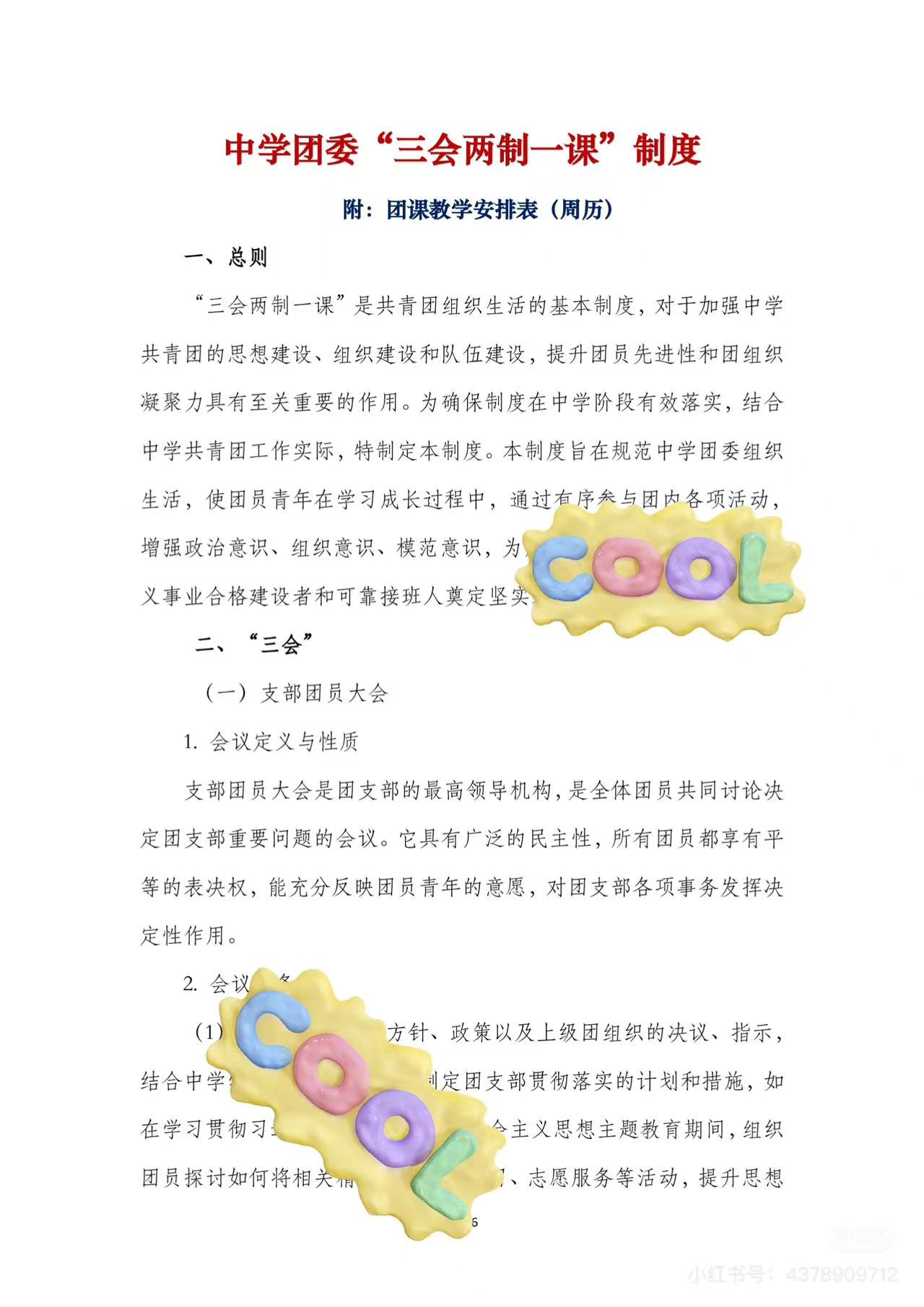 中学团委“三会两制一课”制度
