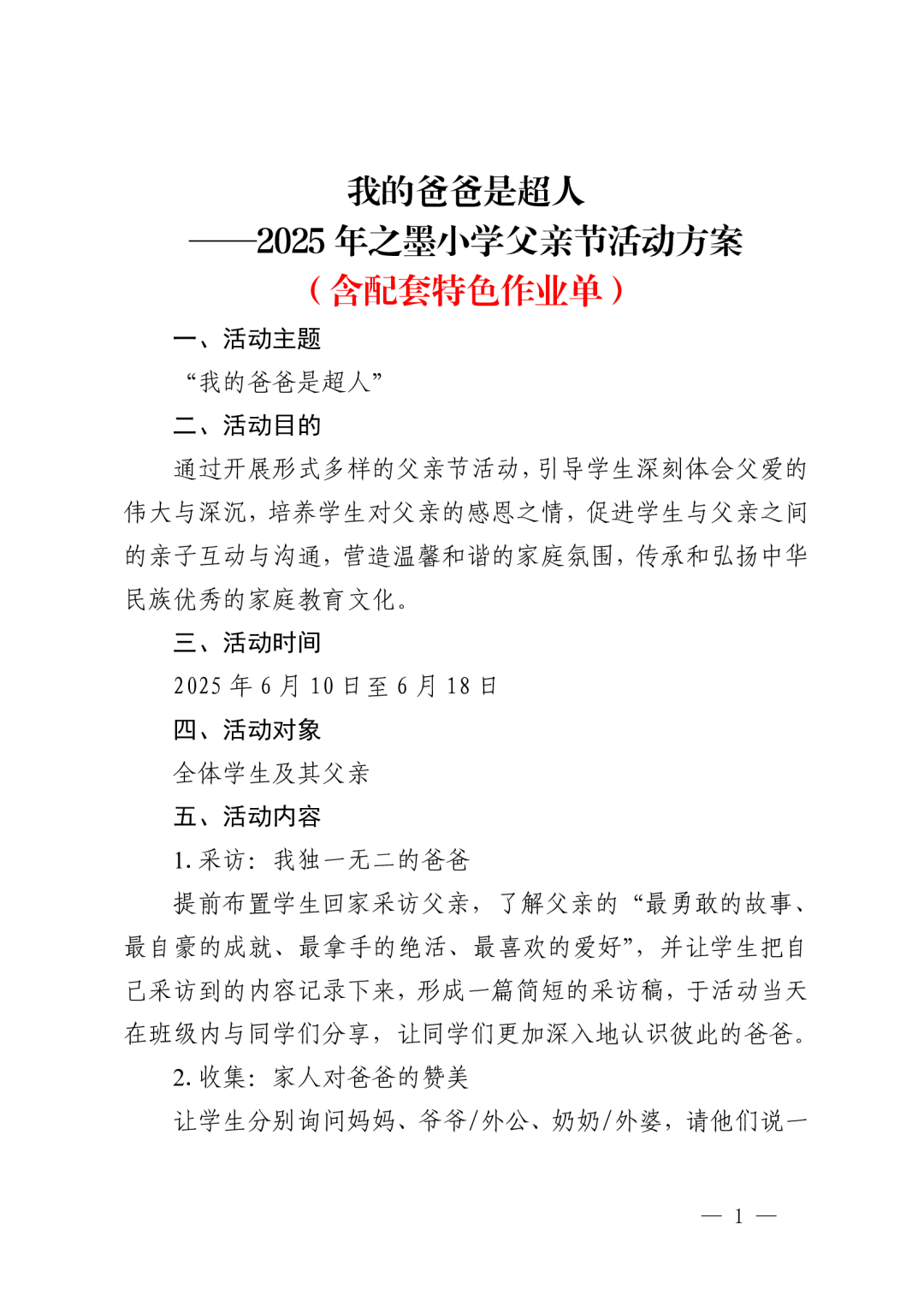资源简介:我的爸爸是超人年父亲节特色作业单年父亲节活动方案年父亲节活动总结父亲节活动简讯 发现一份让爸爸秒变“小朋友”的神仙作业单跟着做直接把父爱氛围感拉满全程高能催泪又治愈快收藏给娃抄作业! 【四大暖哭环节|解锁爸爸的隐藏温柔】 采访大揭秘:爸爸竟是隐藏“超人”灵魂四连问:最勇敢的故事(原来爸爸曾单枪匹马修好了家里跳闸的电路!)
