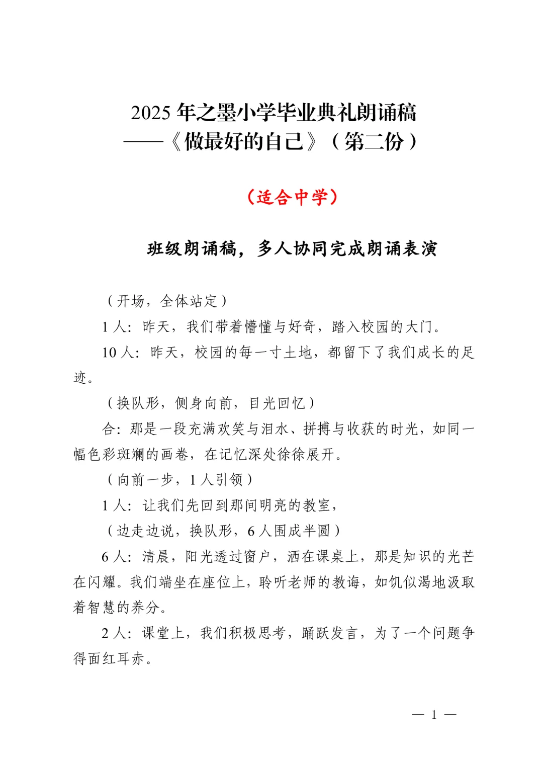 > 中学版2025年毕业典礼全套材料_离别的音乐响起,毕业典礼仪式感直接拉满
