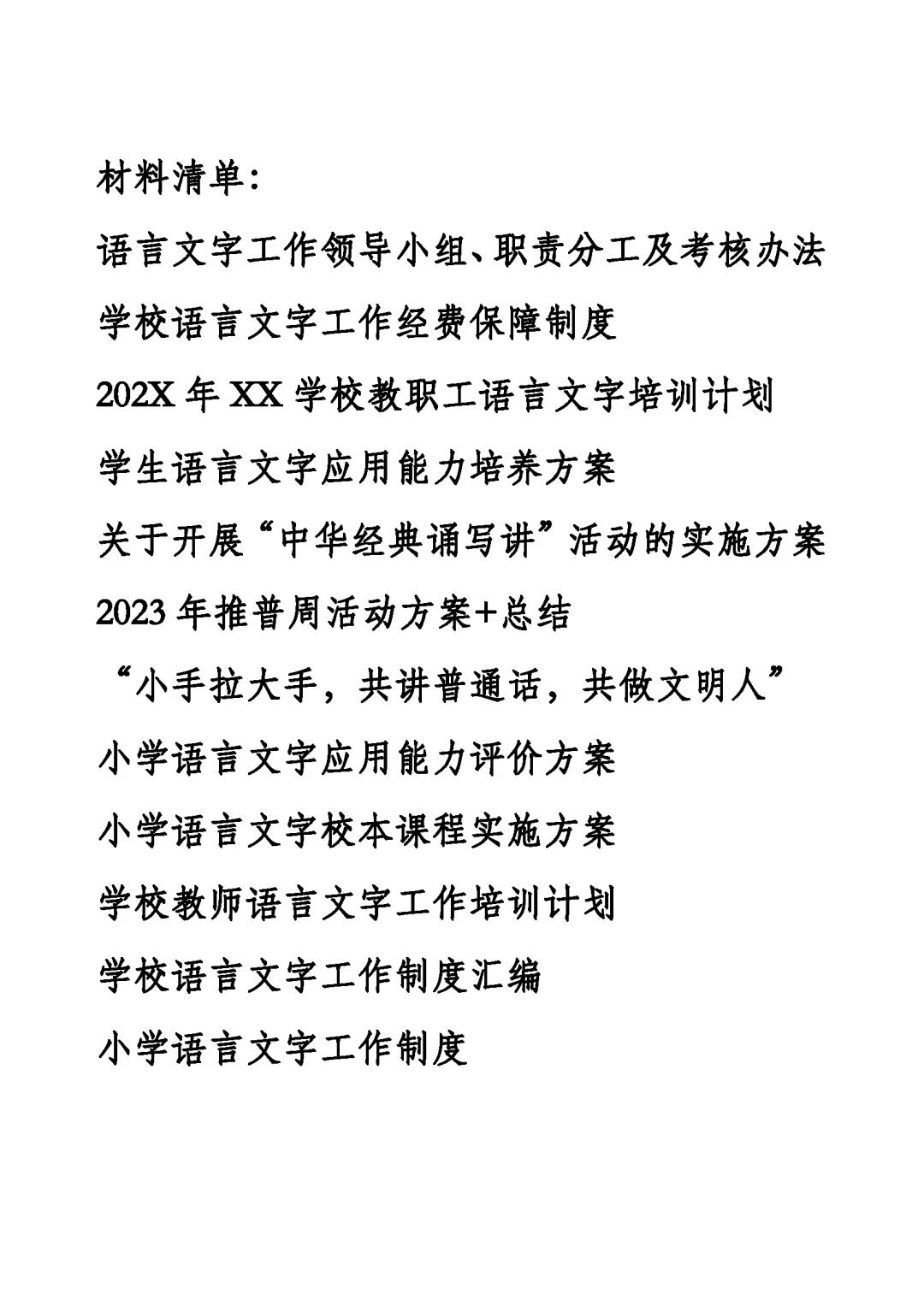 资源简介:中小学学校语言文字迎检材料语言文字考核