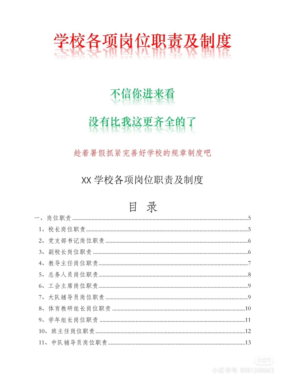 资源简介:学校岗位职责及制度‖没有比我这更全的了