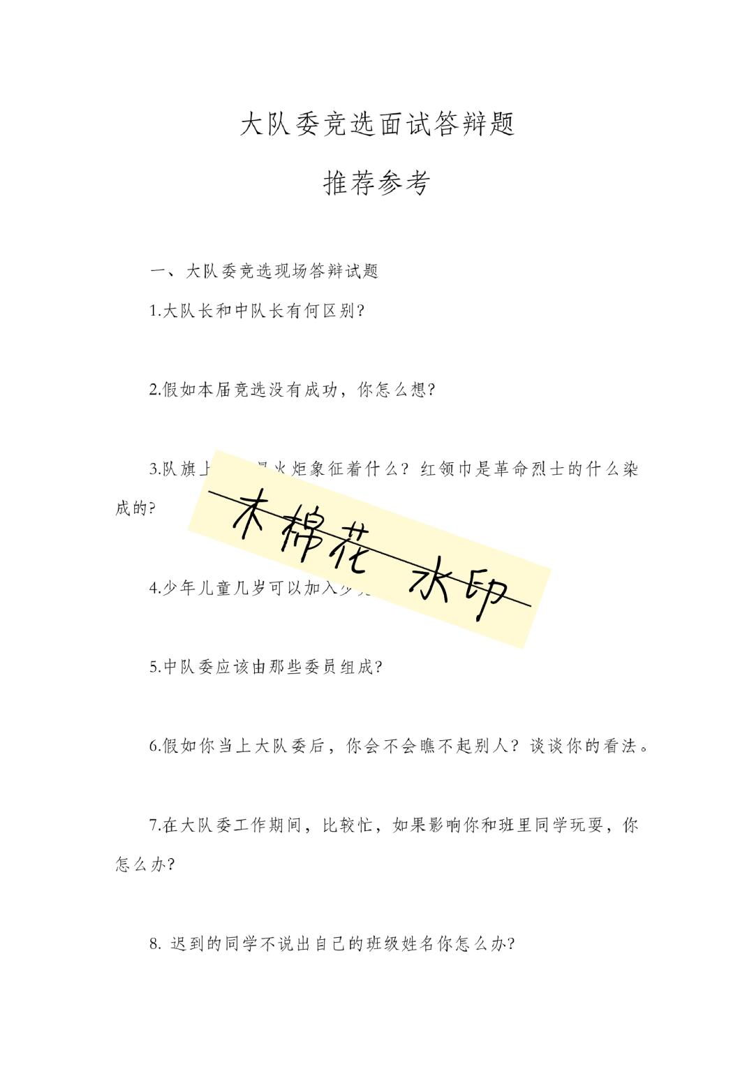 资源简介:少先队大委干部竞选方案 完整可直接实施