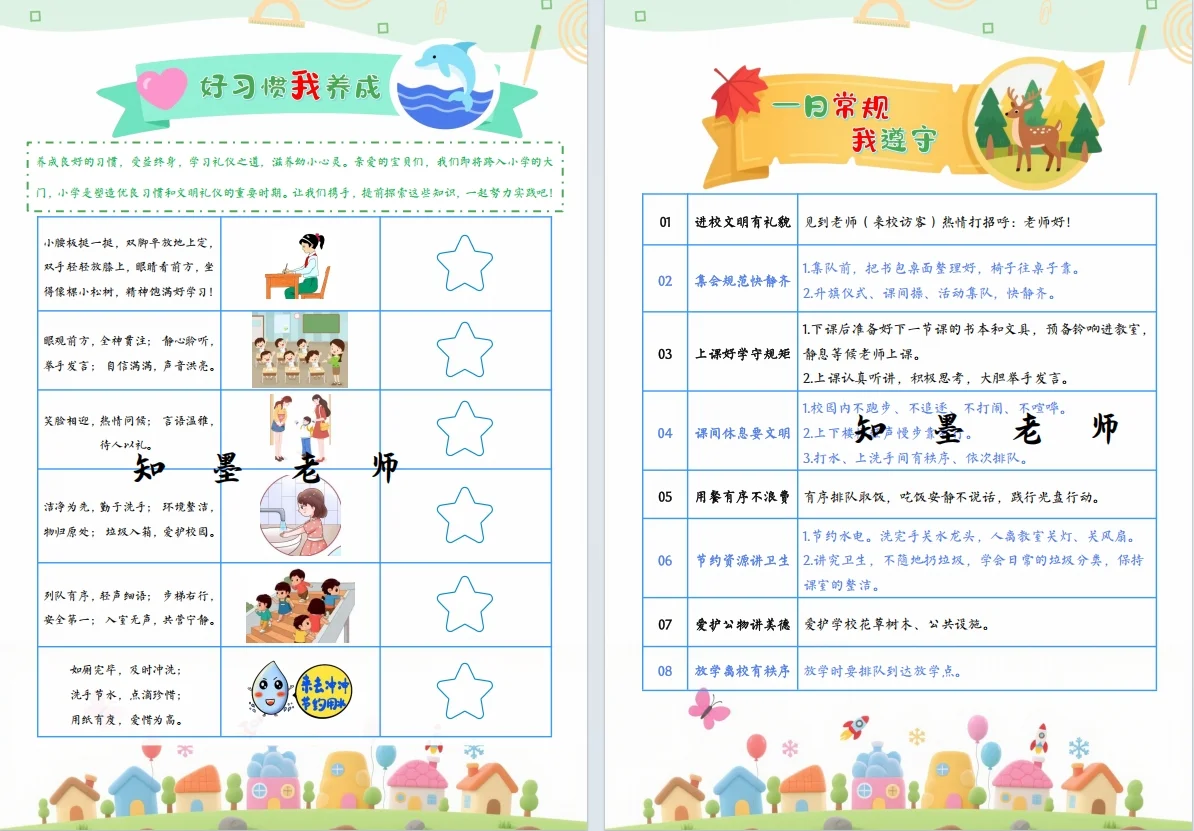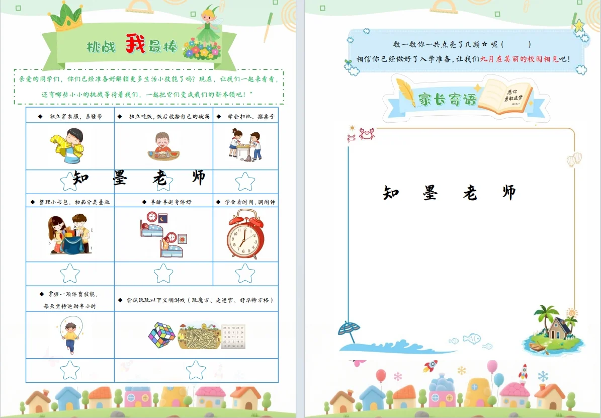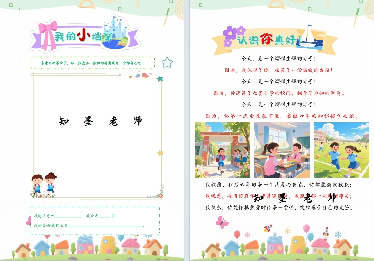 资源简介:你好同学,年秋季开学一年级入学手册含大板块,共页电子档可编辑:封面页、致新生家长的信、我的小档案、认识你真好!、弯道超车(人民日报推荐作息表)、学校作息时间表、准备入学用品、好习惯我养成、一日常规我遵守、你好一年级(学科简介)、学习建议、挑战我最棒、家长寄语、开启小学时光播种成长梦想(结语)、封底页小学入学手册、秋季开学入学手册核心亮点大揭秘人民日报同款作息