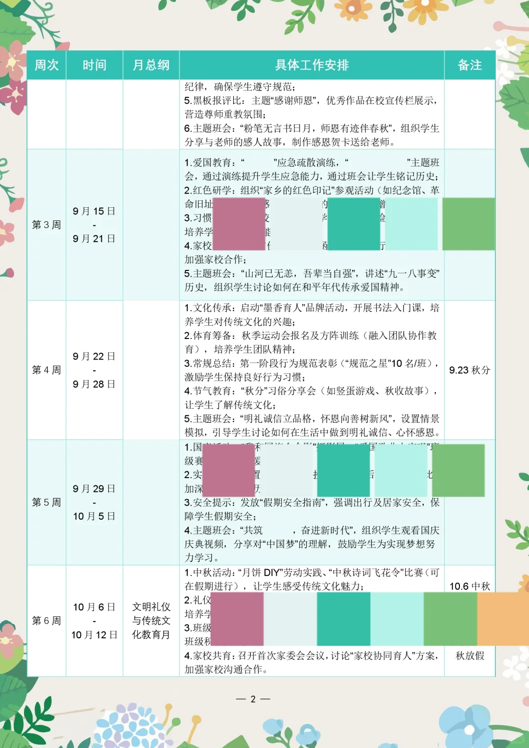 校长说的这是一份很实用的德育工作行事历(2025年秋季德育工作安排表)