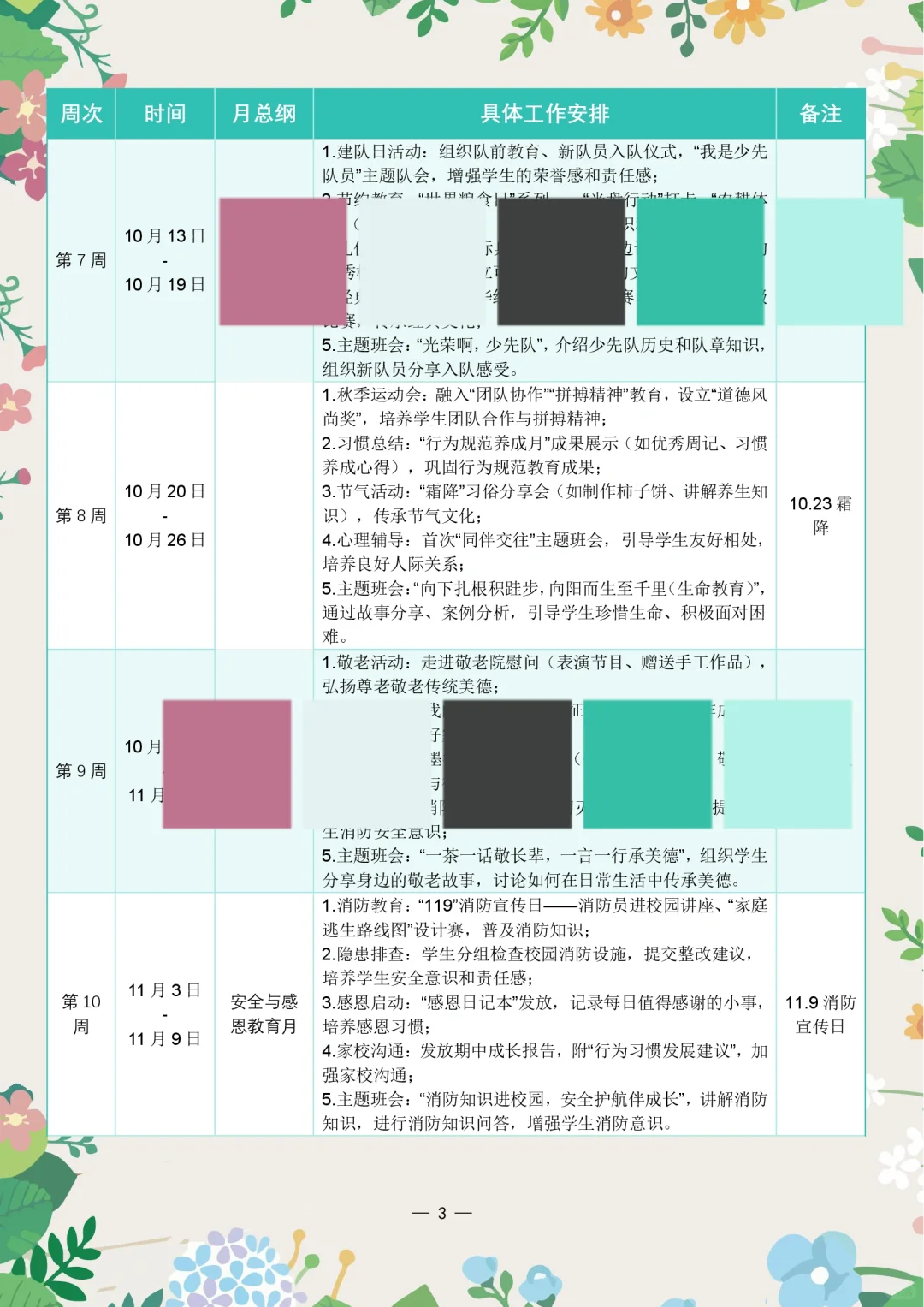 > 校长说的这是一份很实用的德育工作行事历(2025年秋季德育工作安排表)