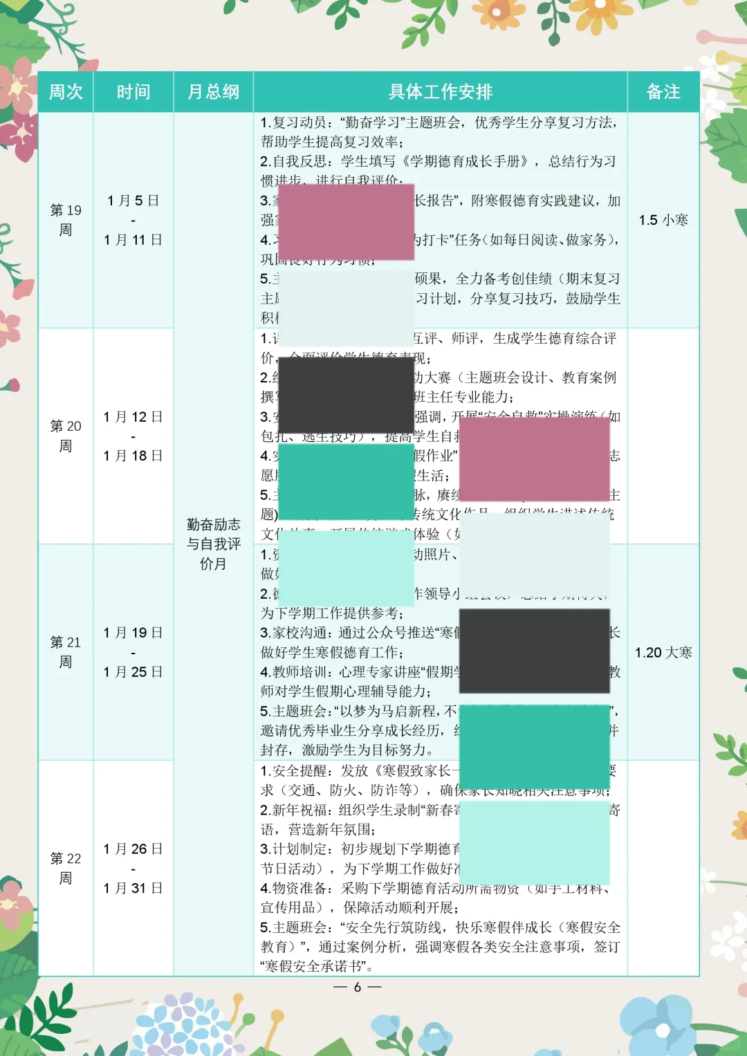 资源简介:学年第一学期德育工作行事历年秋季德育工作安排表有及版本没有花花架子,一张表全是实用、接地气的安排,校长说,超级实用,这种不整花活只办实事的安排表,真的值得夸德育工作少先队大队辅导员大队辅导员德育处德育德育工作安排表德育行事历德育主任