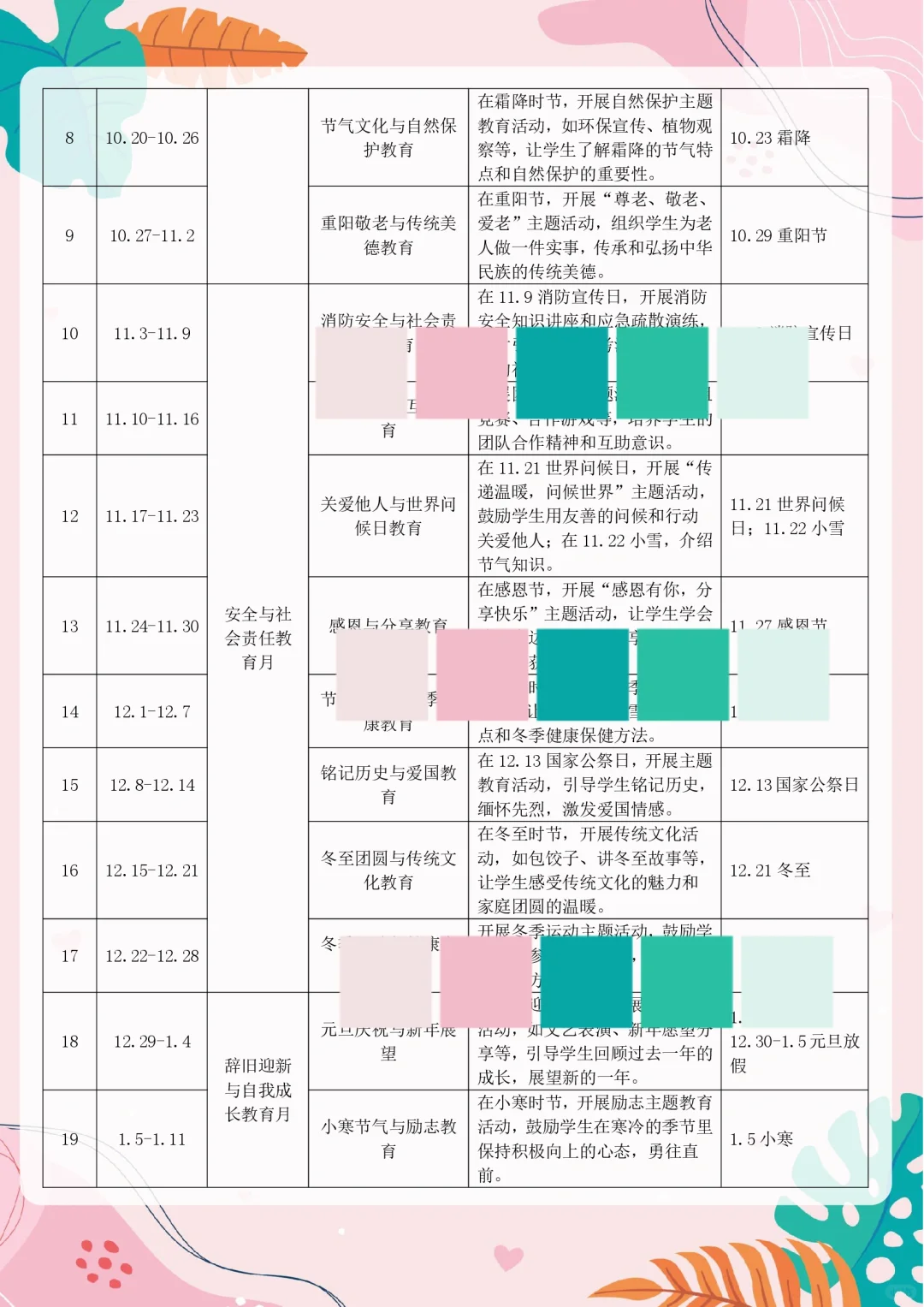 > 今天挖到一份宝藏2025年秋季德育主题活动安排表