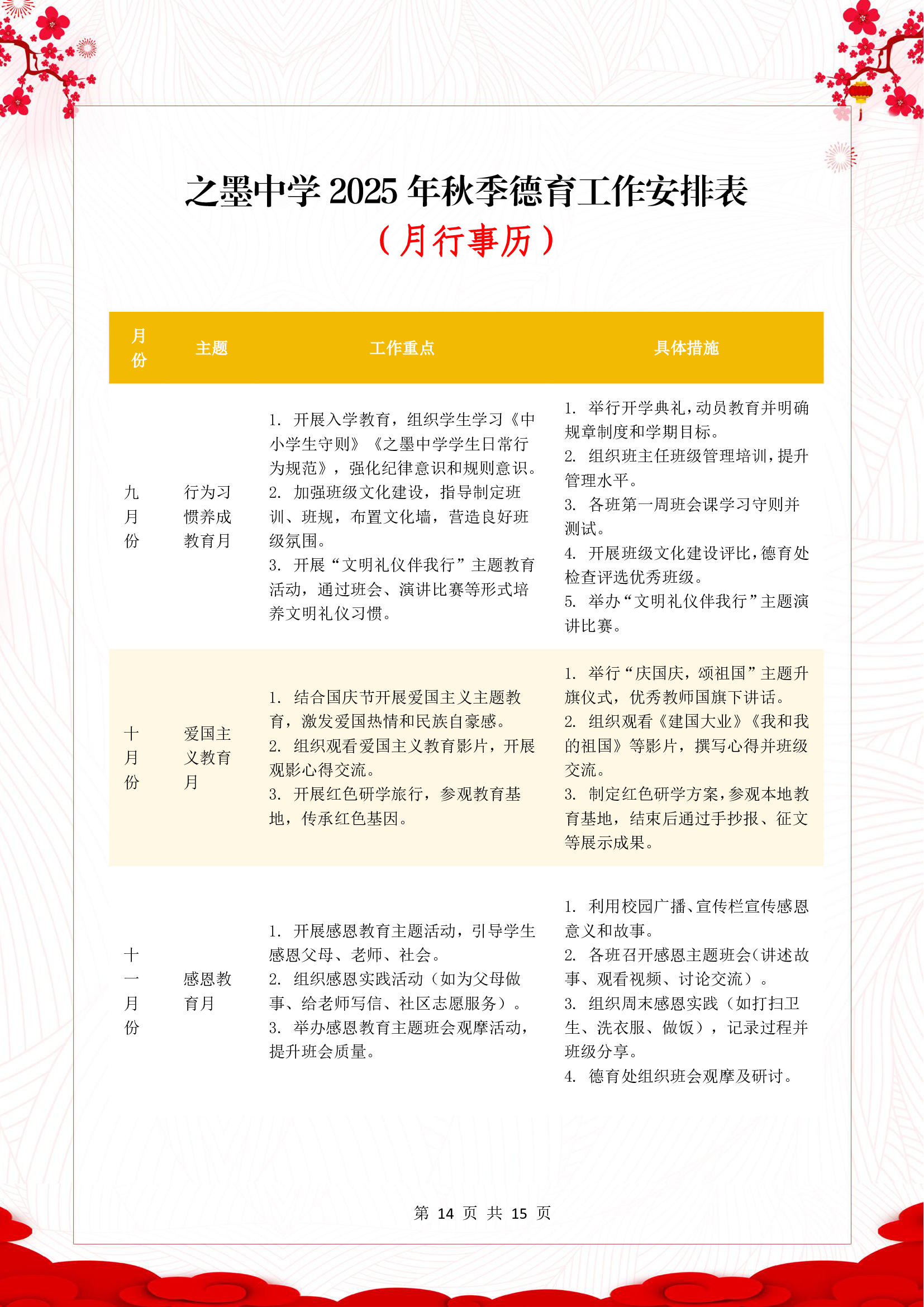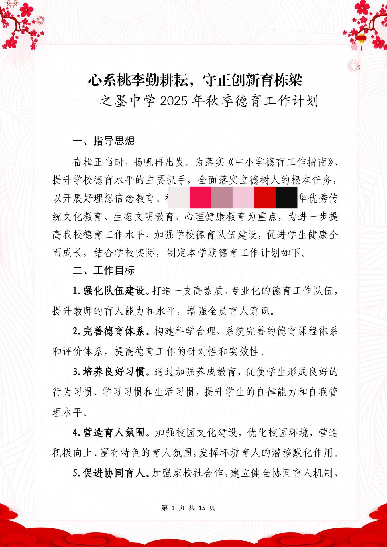 > 2025-2026学年之墨中学德育工作计划含月工作安排表——心系桃李勤耕耘,守正创新育栋梁