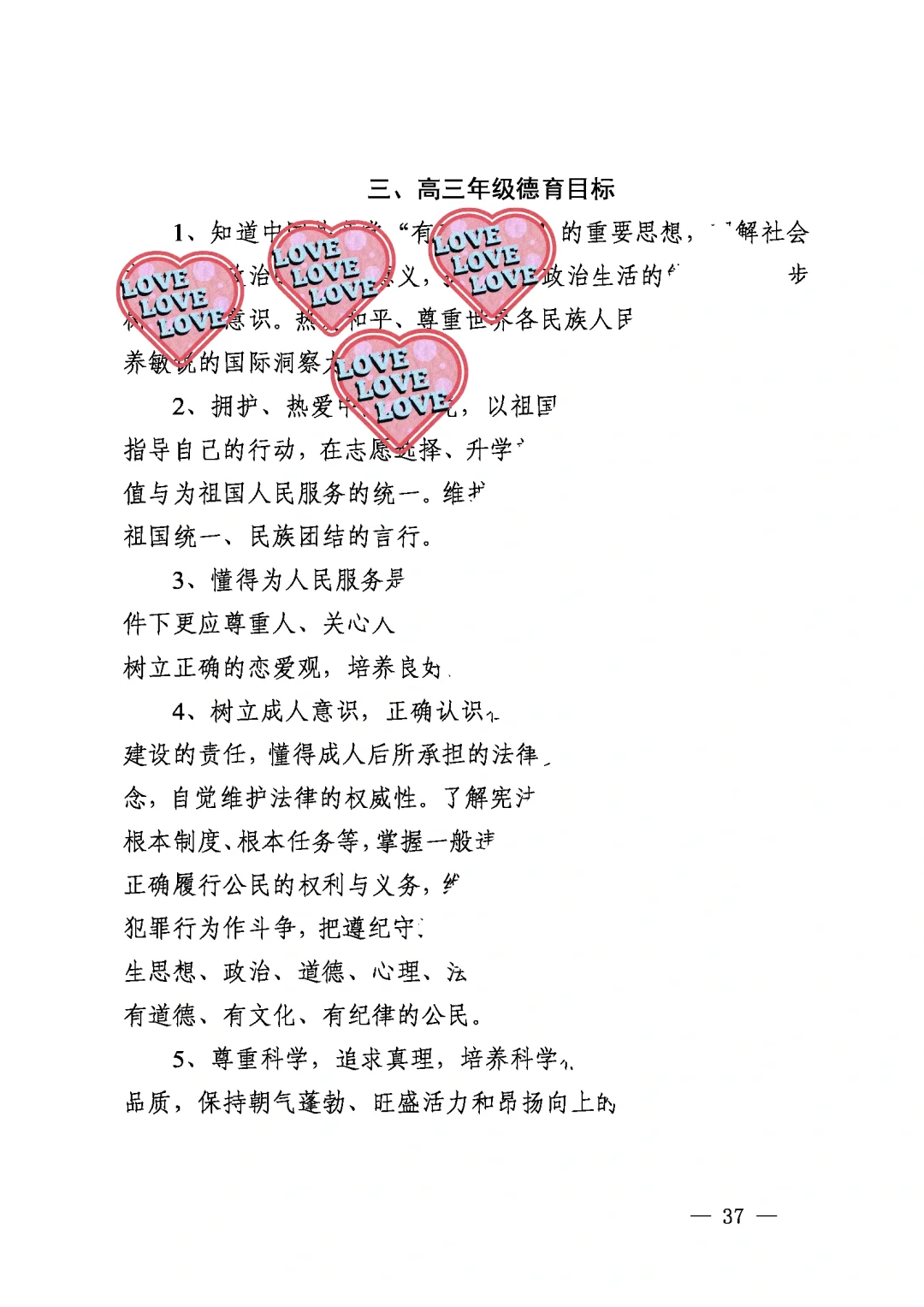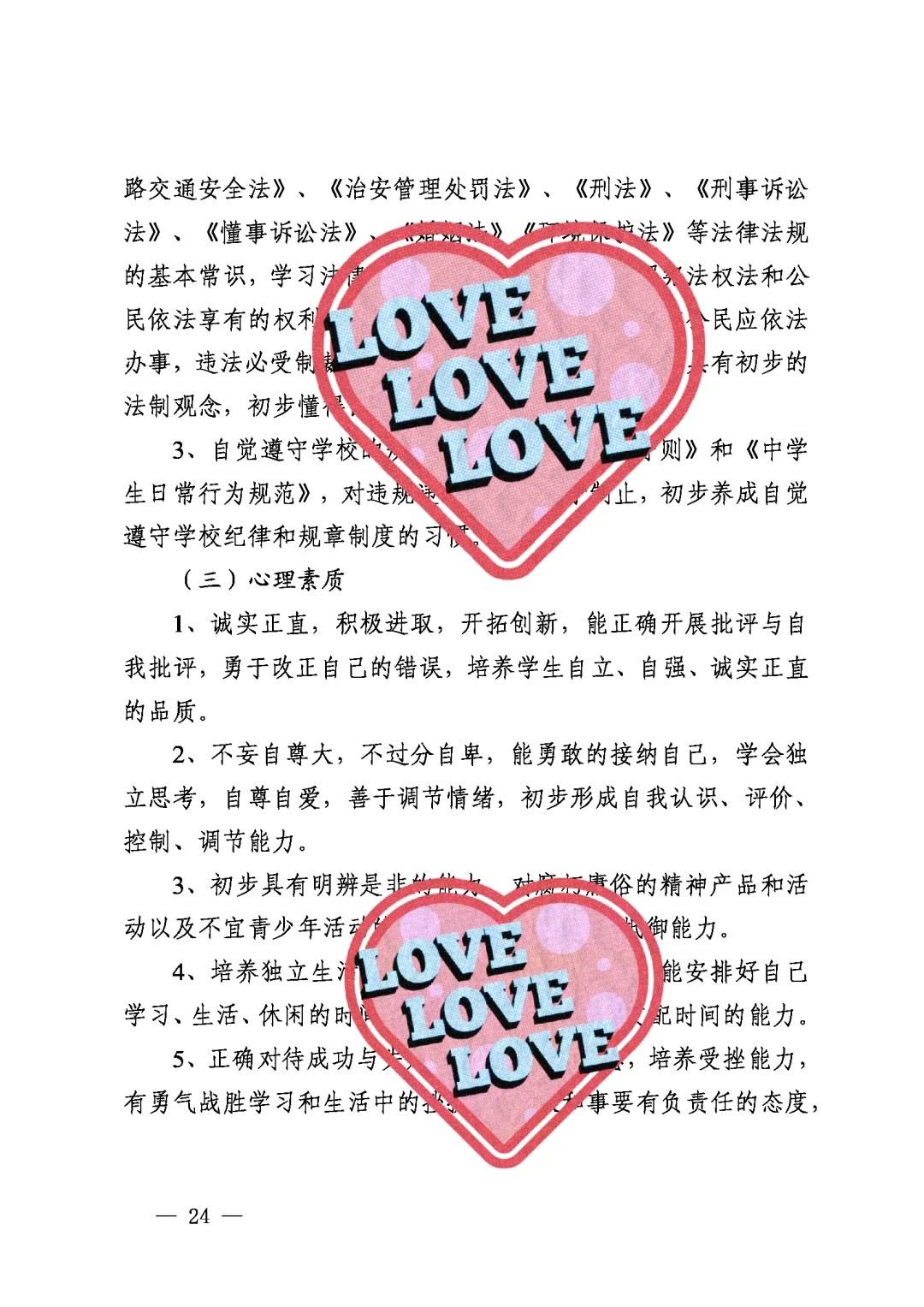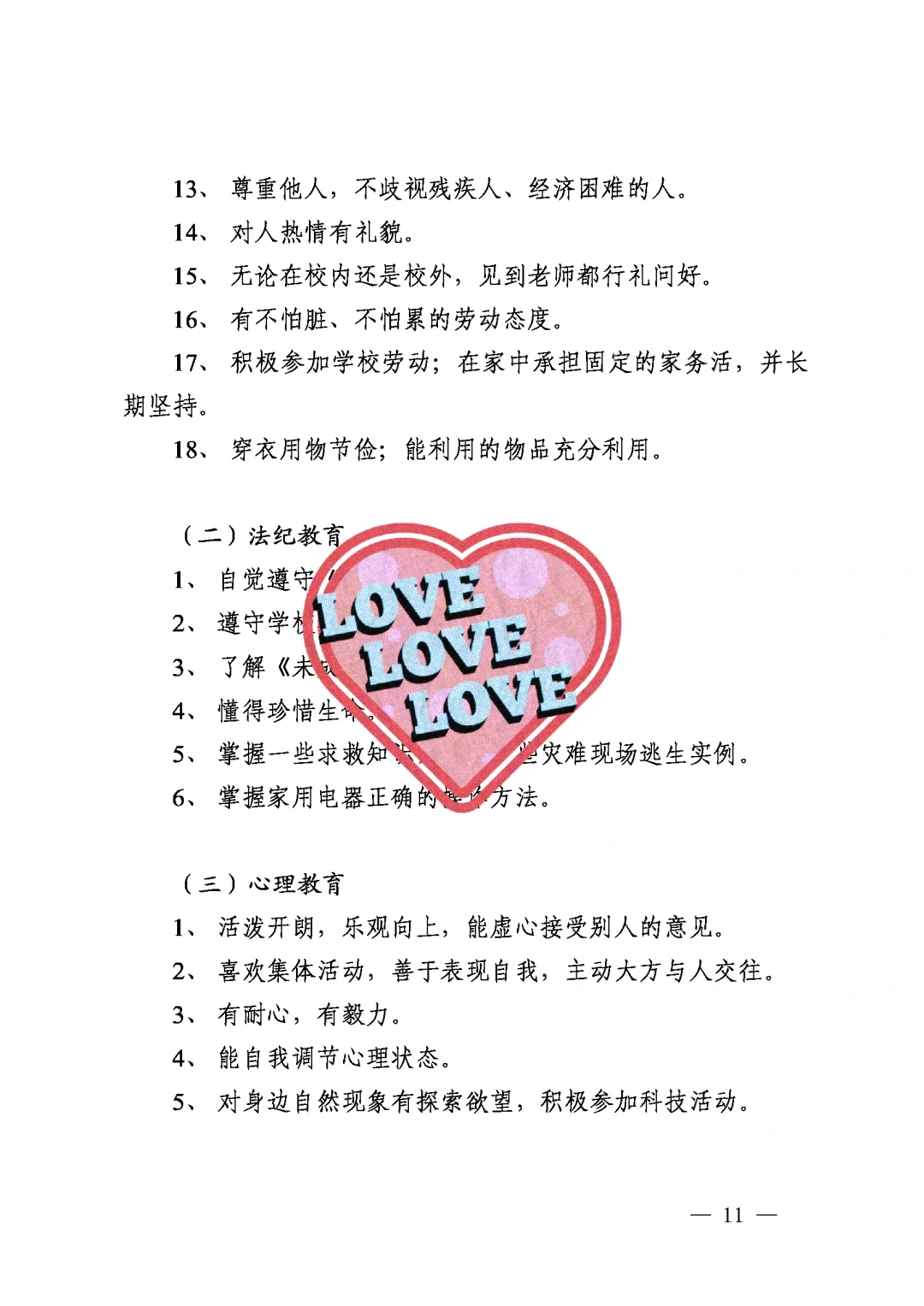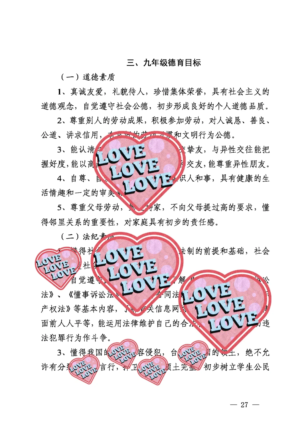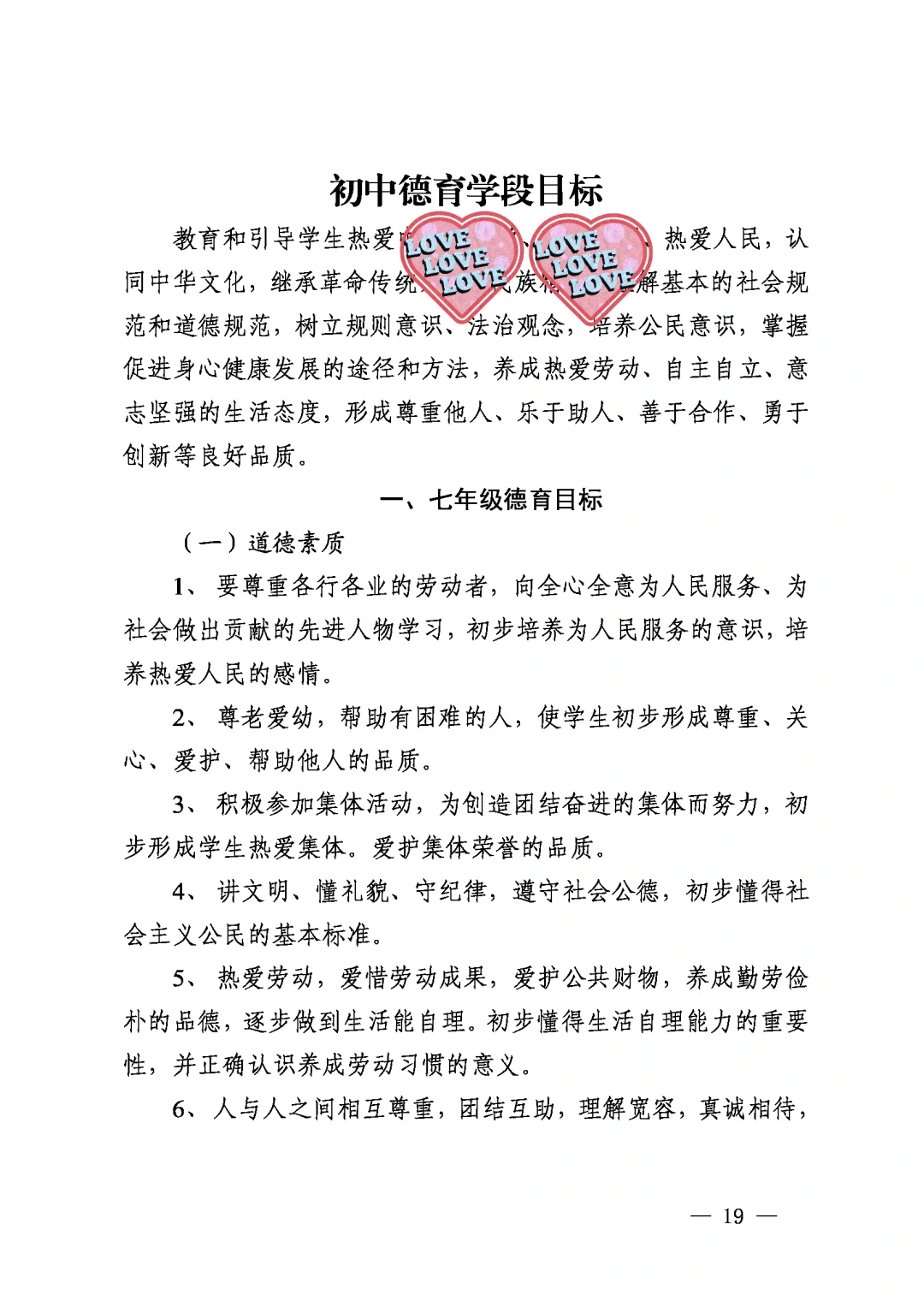 资源简介:小学各年级德育分段目标 初中各年级德育分段目标 高中各年级德育分段目标 小学:教育和引导学生了解家乡发展变化和历史常识,了解优秀传统文化和党的光荣革命传统,理解日常生活的道德规范和文明礼貌,初步形成规则意识和法治观念,养成良好生活和行为习惯,具备保护生态环境的意识,形成诚实守信、友爱宽容、自尊自律、乐观向上等良好品质。 初中德育学段目标:教育…,继承革命传统,弘扬民族精神,理解基本的社会规范和道德