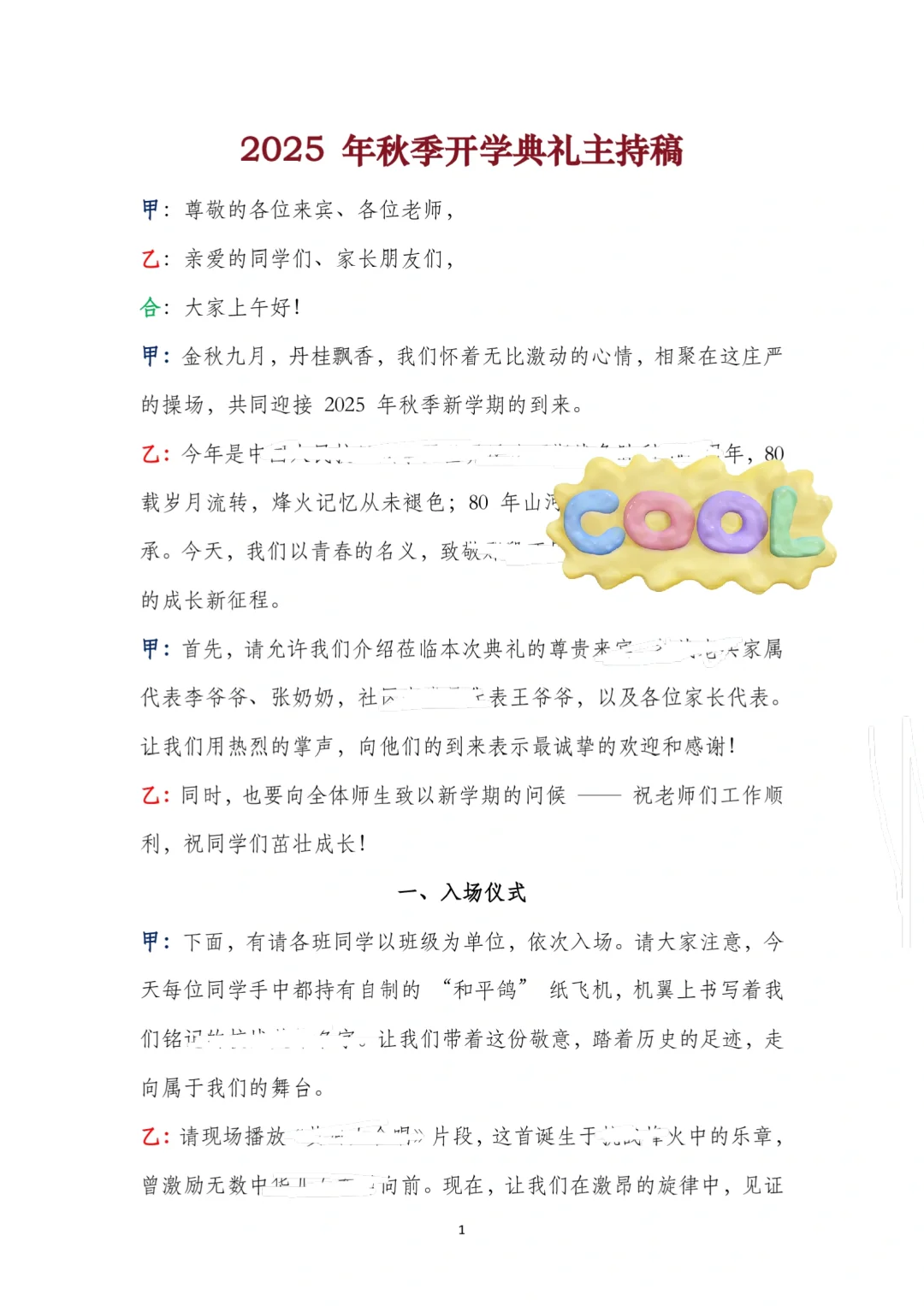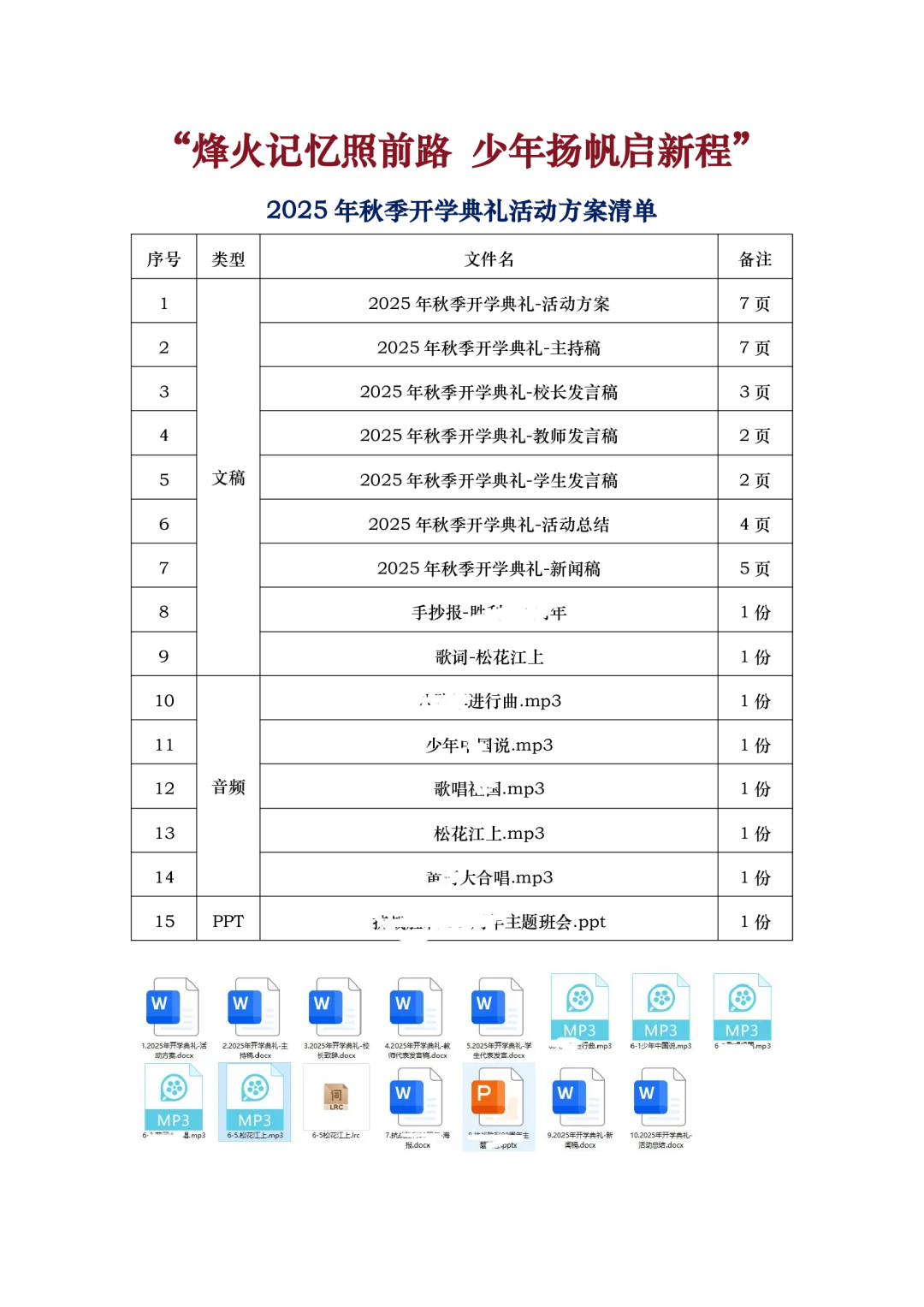 2025年秋季开学典礼活动方案全套——烽火记忆照前路,少年扬帆启新程