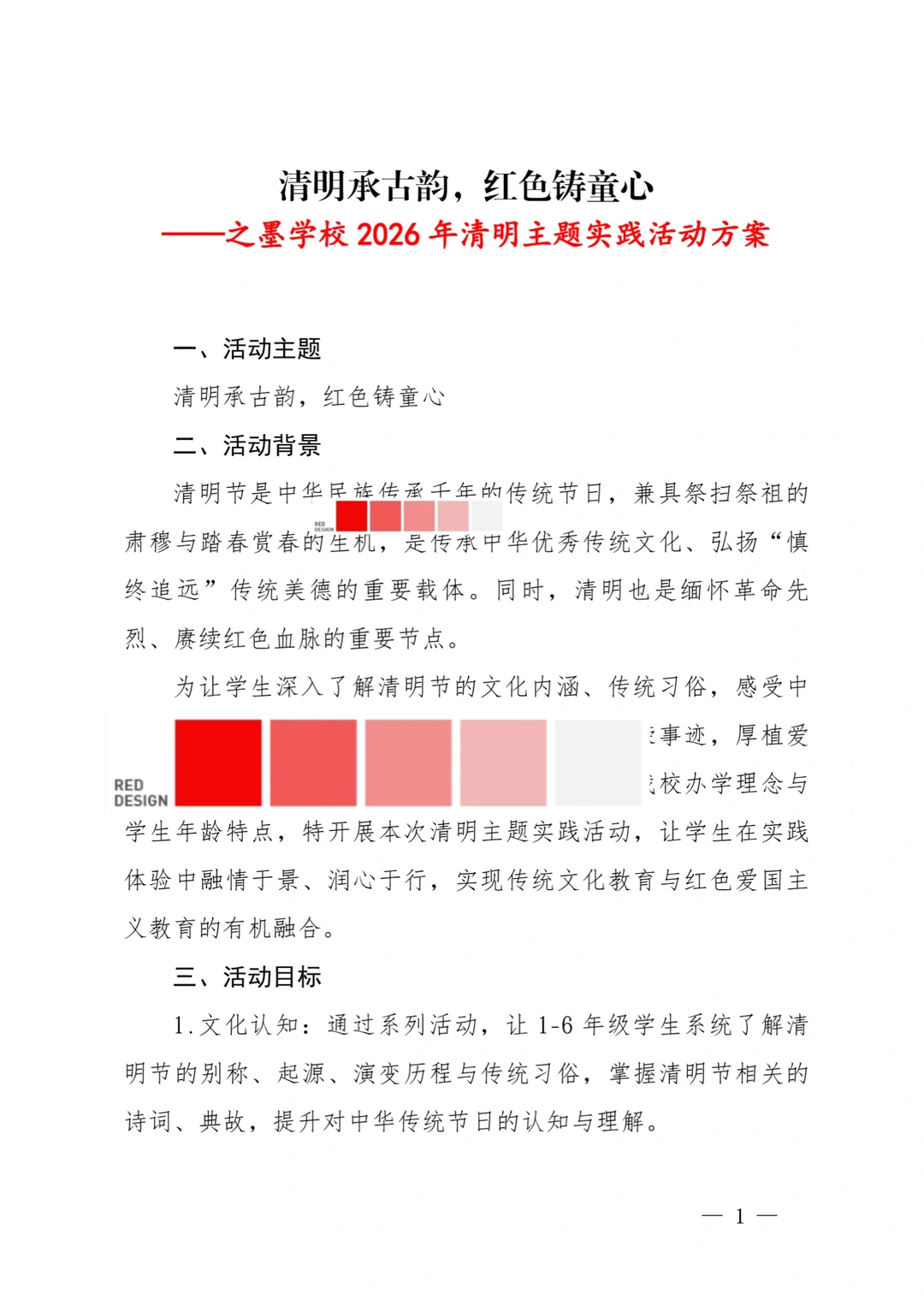 2026年之墨学校“清明承古韵,红色铸童心”主题实践活动方案